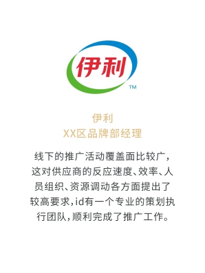 ID服務品牌 我們先后經(jīng)歷與世界眾多知名品牌的合作,成功地將國際化的營銷策劃理念及執(zhí)行方式融入本土,為更多的中國企業(yè)提供全新的品牌推廣思路和執(zhí)行方案。